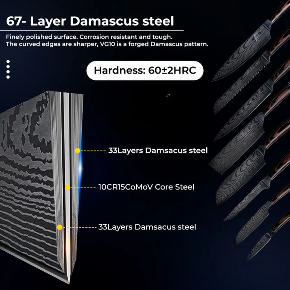 Our exclusive knife set offers exceptional sharpness and handcrafted quality. The smart choice for your kitchen — no need for constant replacements!