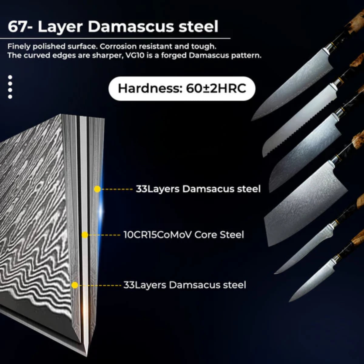 • Damascus steel blades – durable, razor-sharp, and corrosion-resistant