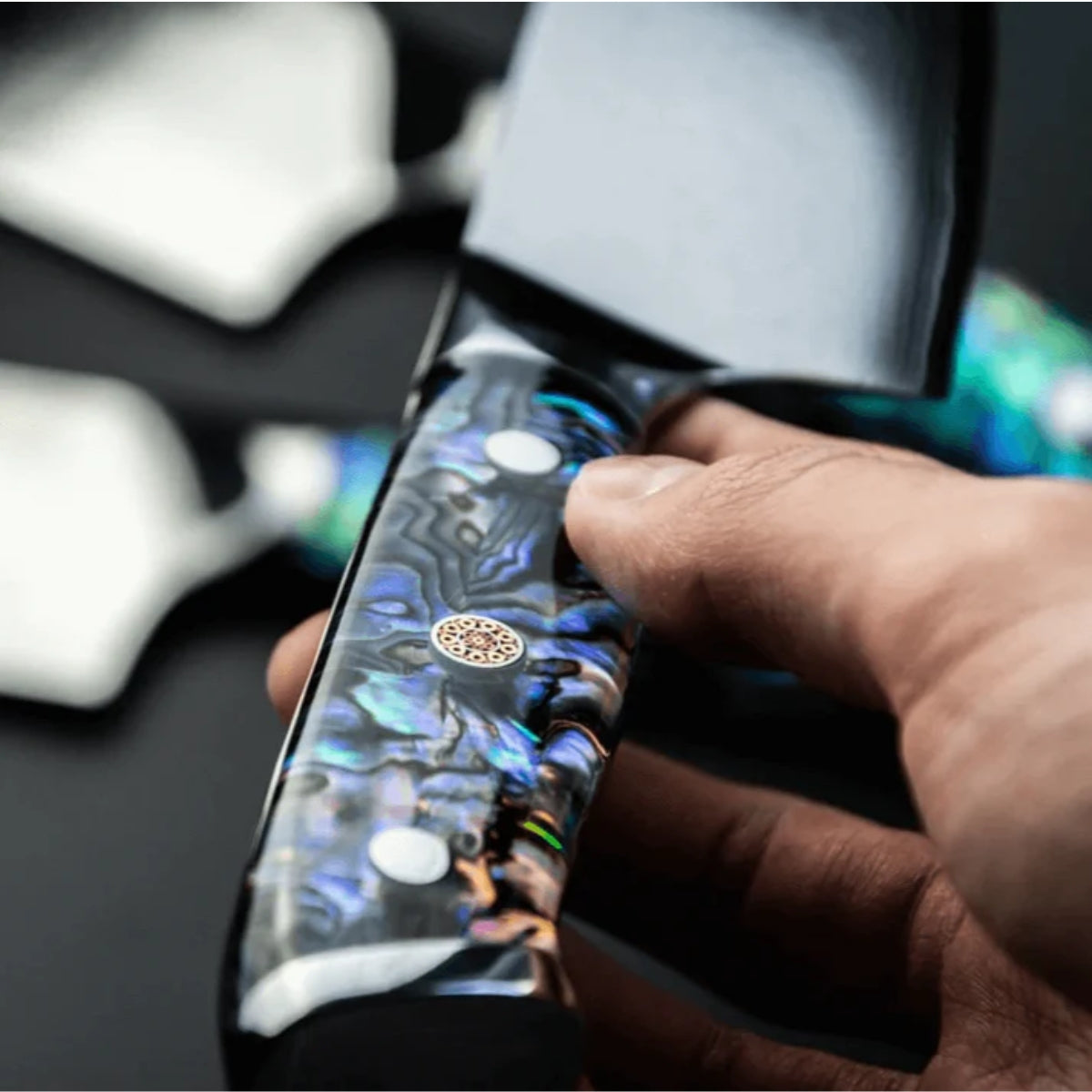 • Abalone shell handles – iridescent, eye-catching, and truly unique